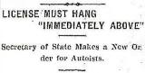 | Headline announcing the new rules requiring Operators licenses to be hung next to a vehicles regular license plate |