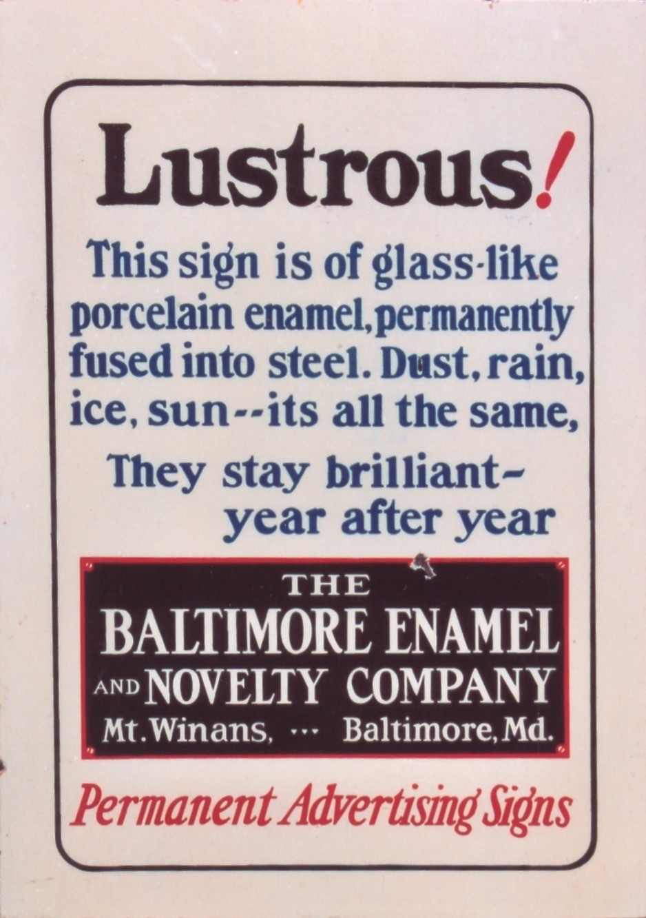 | Large porcelain promotional sign, circa 1930s |